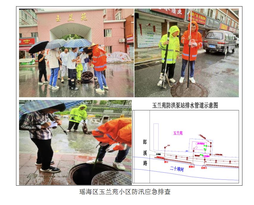 针对老旧小区、低洼路段等重点区域,我司作为瑶海区水务中心排查单位及时全力出动,此次排查聚焦“堵点、痛点、难点”,采取“人工巡查+设备探测”双轨模式。排查人员携带管道内窥镜、水位监测仪等专业设备,深入各片区雨污水井,逐一检查管道是否存在淤积、堵塞、破裂等问题,重点排查低洼地段关键区域的管道排水能力。针对排查中发现的管道淤堵、水流不畅等隐患,现场紧急调配抽水泵、吸污车、疏通车等设备即时清理,对积水路段实行交通管制,组织人员机械清理排水口杂物,加速积水消退,确保问题“发现即处理”,最大限度减少积水风险。