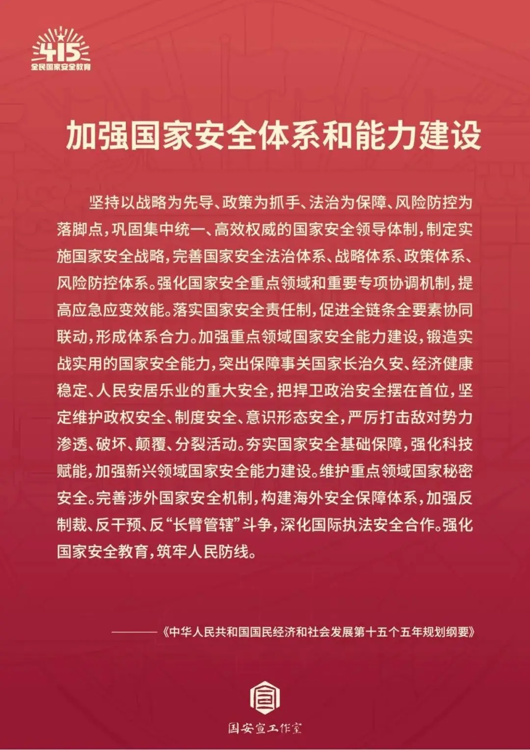 信息管理部01 新闻资讯 2026年4月15日 点击数:73 “4·15”全民国家安全教育日丨国家安全,你我共筑 下一篇文章: 今天是第十一个全民国家安全教育日——维护国家安全,这些细节需要多留意(转载) 下一页
