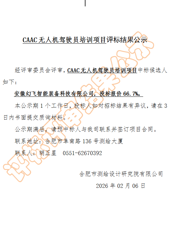 CAAC无人机驾驶员培训项目评标结果公示