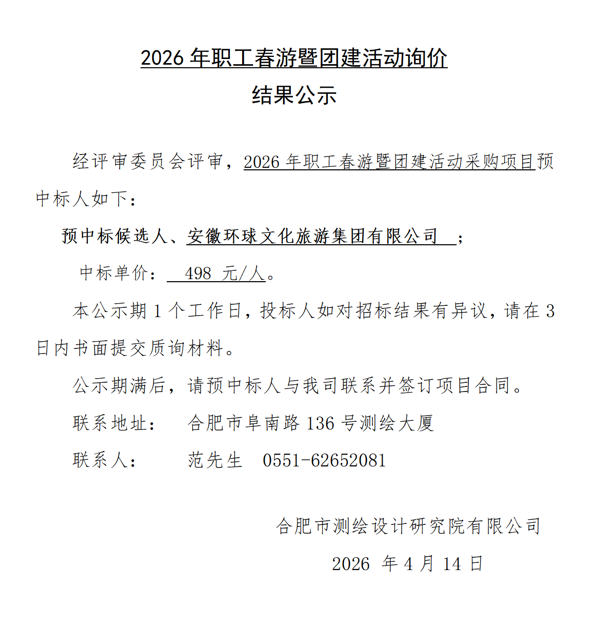 下一篇文章: 2026年公司职工春游暨团建活动服务询价公告