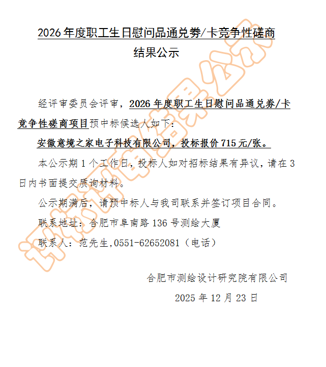2026年度职工生日慰问品通兑劵/卡竞争性磋商 结果公示