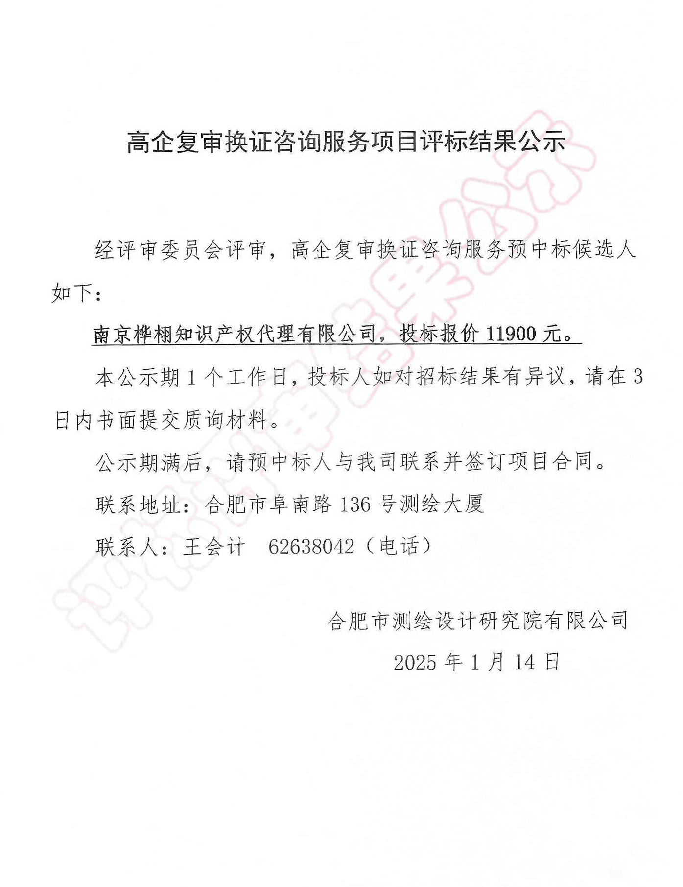 信息管理部01 采购信息公告 2026年1月15日 点击数:470 高企复审换证咨询服务项目评标结果公示 上一篇文章: 基于高分辨率遥感影像和深度学习技术的城中村提取研究项目评标结果公示 上一页 下一篇文章: 基于高分辨率遥感影像和深度学习技术的城中村提取研究项目邀请招标公告 下一页