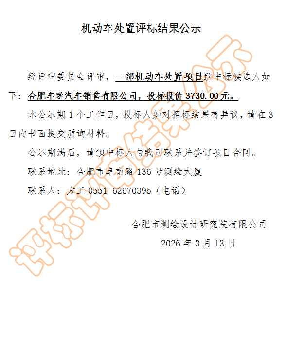机动车处置评标结果公示